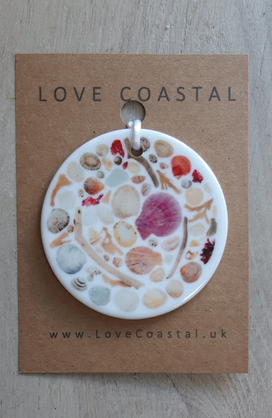 These circular, flat ceramic decorations are perfect to hang on Christmas Trees, in Beach Huts, in Coastal Kitchens or any area where you want a little coastal decor.